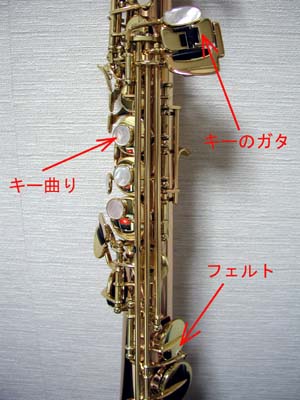 このキーに隙間があるとそれ以下の音が裏返りやすいのですよ、ですから浮いたキーを強く押さえて吹かねばなりません。