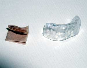 よく言われる解決法は油取り紙を折って下歯にかぶせるもの(写真左参照)。