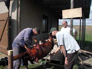 チェコだけではなく、欧州ではよくある習慣なのかもしれませんが、パーティー(記念日)では、豚の丸焼きが出ます。