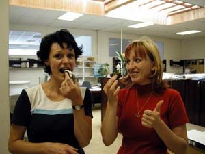 日本食、特に海苔に興味津々のお二人だったので、試食会を開きました。