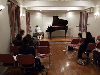 課題曲演奏の他にピアノの先生が質問(英語)やリクエストをして、それに生徒が答えていました。