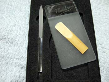 10枚のうち、そのまま使えるのは2,3枚で、それ以外は写真にあるリード削り器を使って調整する必要があります。